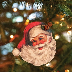 Vintage Santa Face Wooden Ornament