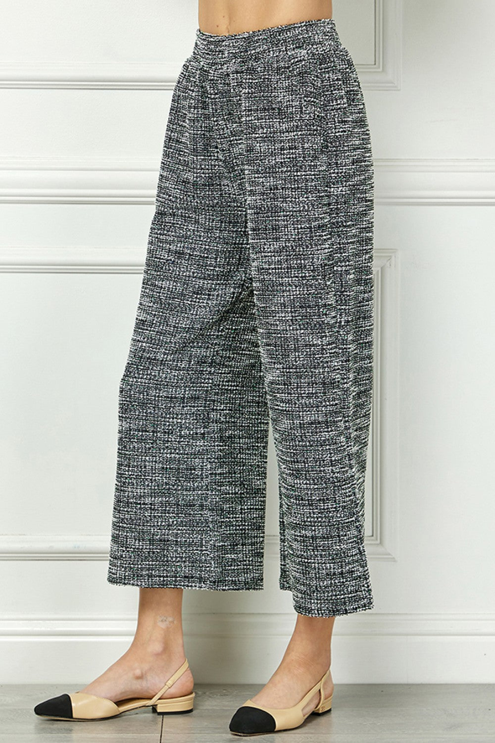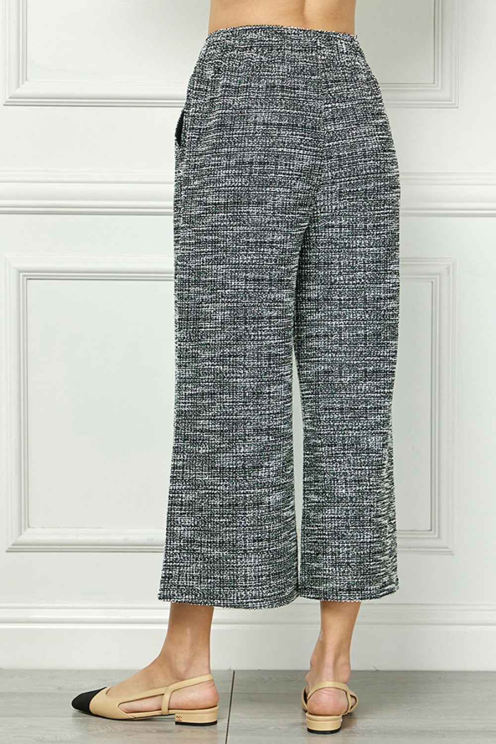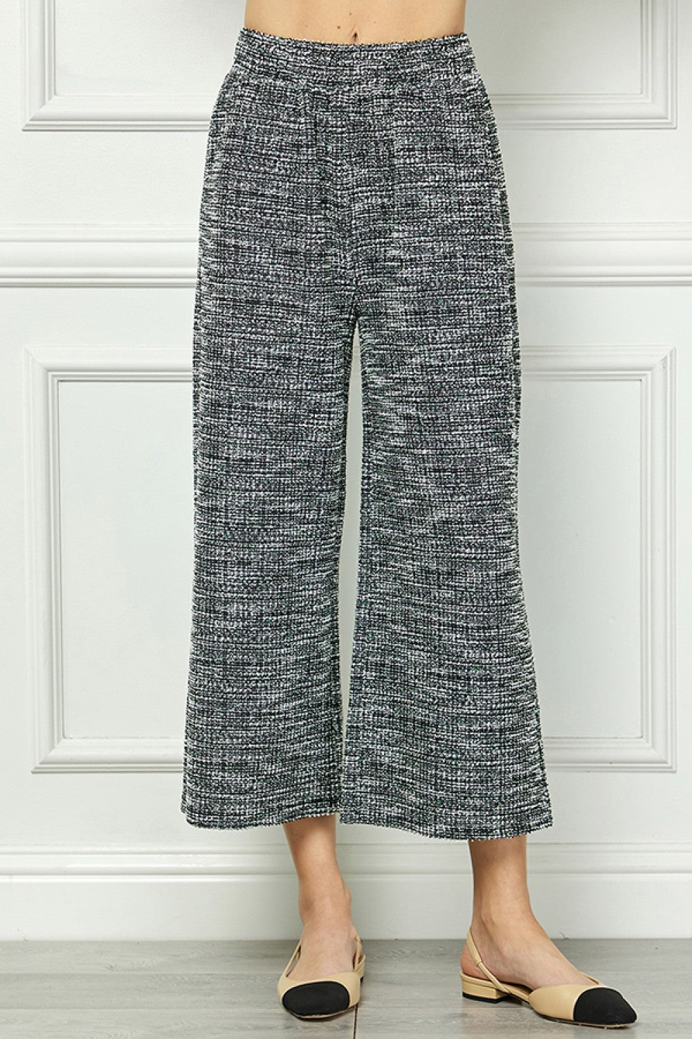 These black Boucle Textured Cropped Pants offer a stylish and versatile addition to any wardrobe. The unique boucle texture adds a touch of sophistication, while the cropped length provides a trendy and flattering fit. Elevate your outfit with these comfortable and fashionable pants.