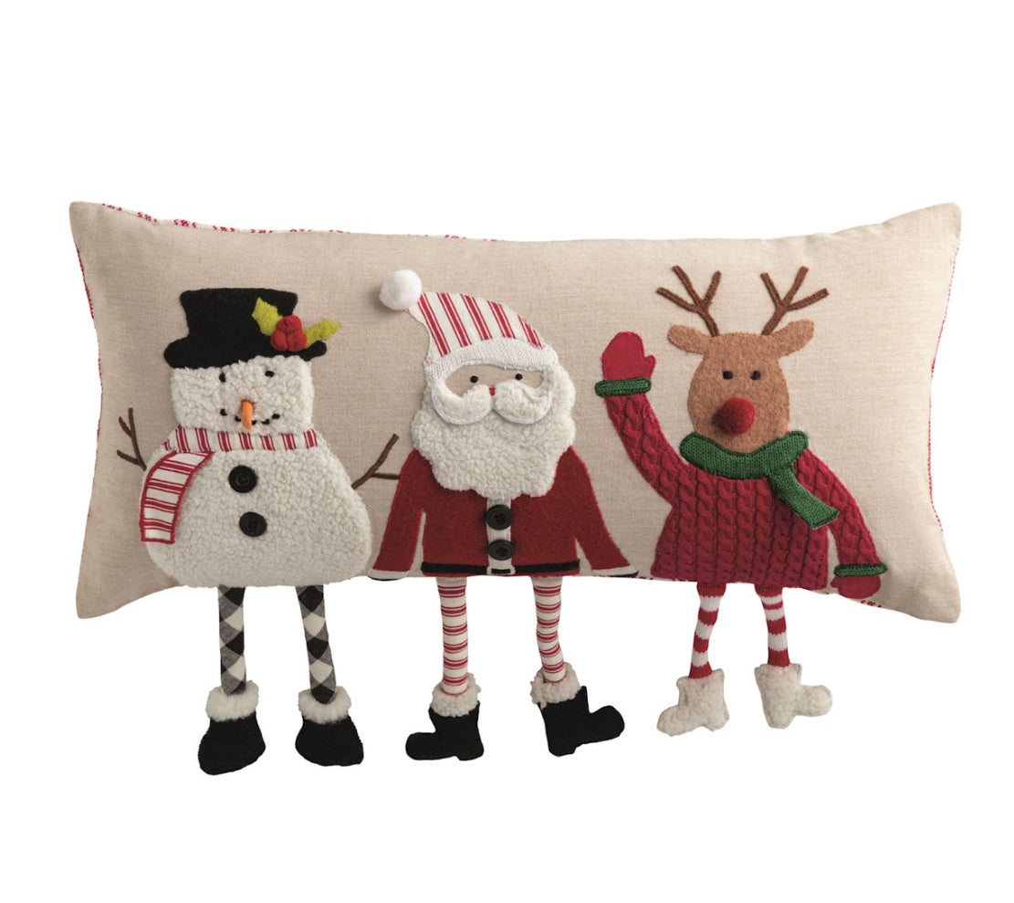 Chambray lumbar pillow features dangle leg embellished appliqués and French ticking back panel. Zipper closure.