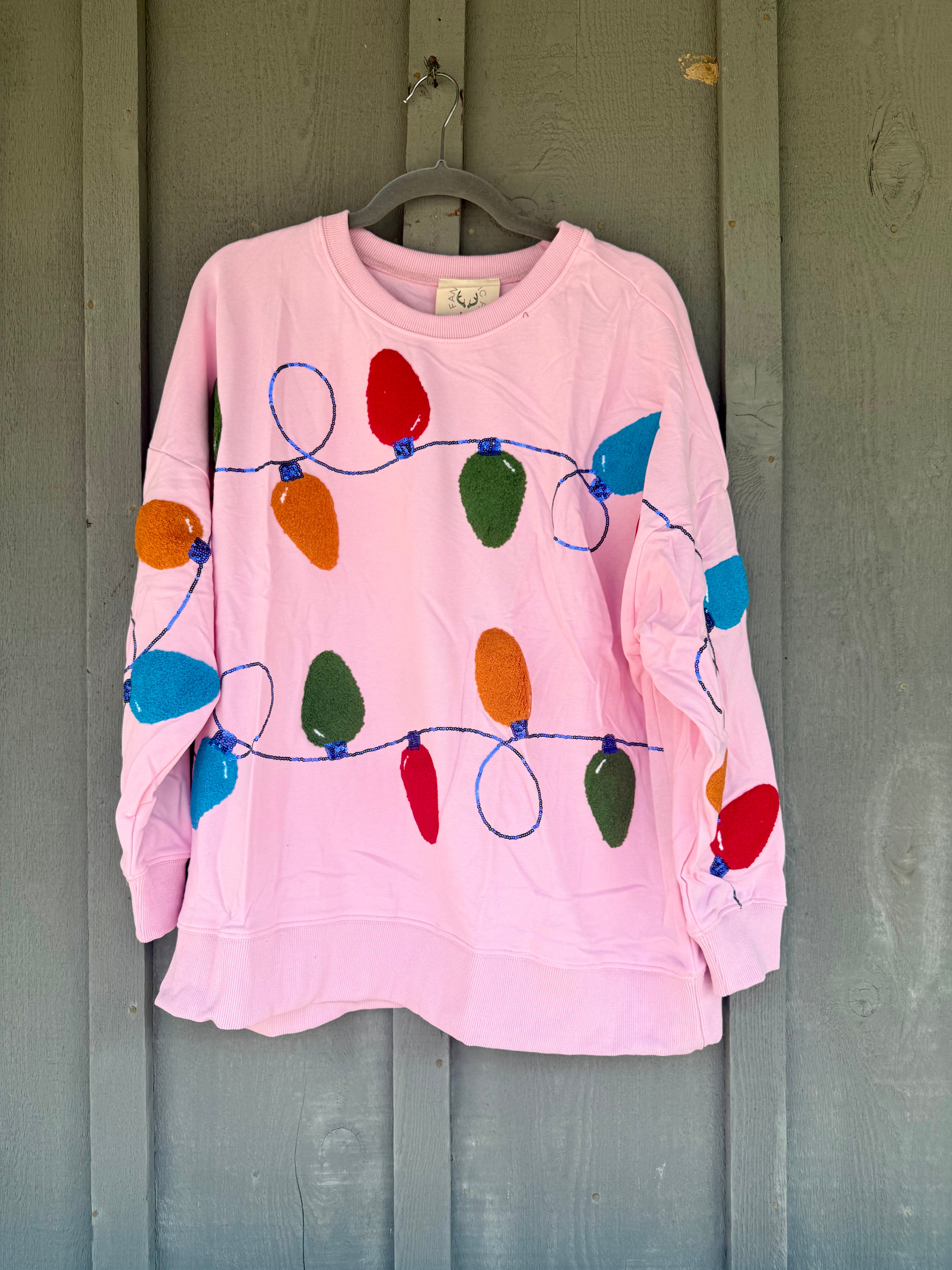 Elevate your holiday wardrobe with our Christmas Lights Sweatshirt. Adorned with sparkling sequins and festive lights, this sweatshirt will make a statement at any holiday gathering. Let the sequin detail and twinkling lights enchant your holiday spirit.