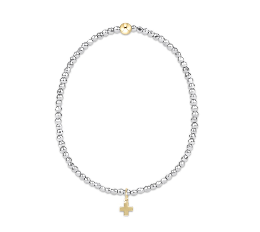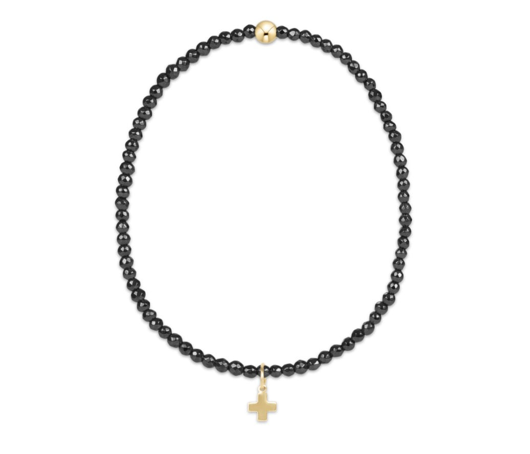 Enewton Extends - 2mm Bead Bracelet Signature Cross Gold Charm - Faceted Hematite