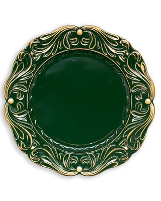 The Christmas Decorative Charger is the perfect addition to your holiday decor. Its elegant green design adds a festive touch to any room. Measuring at 13 inches in diameter, it is the ideal size for displaying candles, a centerpiece, or other decorations. Enhance your holiday ambiance with this beautiful charger.