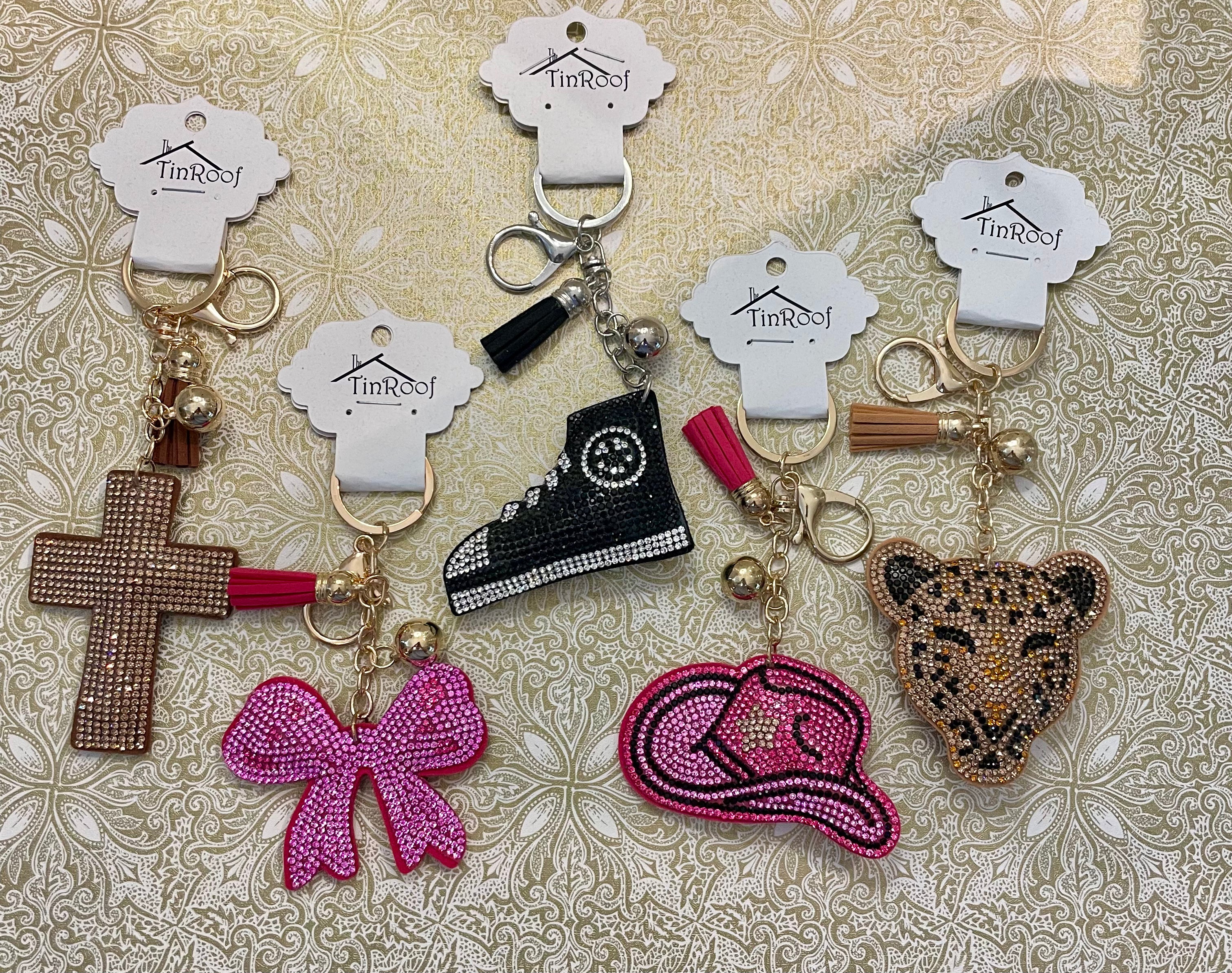 These Key Charms are bedazzled and colorful, making them the perfect accessory for any set of keys. Add some flair and personality to your keychain with these charming and eye-catching charms. With their unique design and vibrant colors, you'll never have trouble finding your keys again.