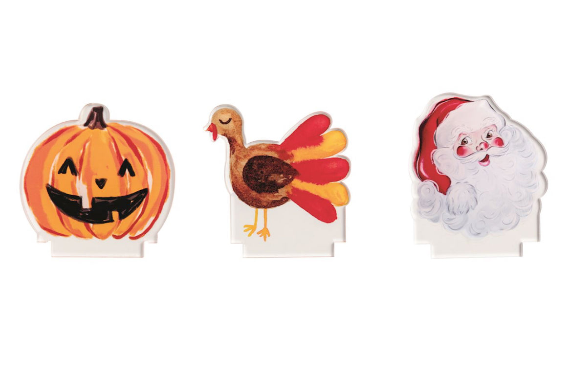 5-piece set. Wooden countdown block with chalkboard surface features top groove to hold interchangeable holiday light-up acrylics. Includes chalk. Requires 2 AAA batteries, not included.