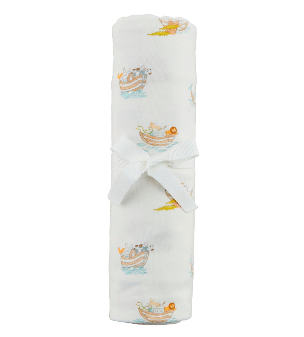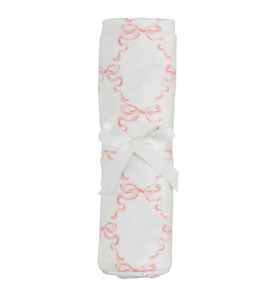 Stretchy soft knit swaddle blanket arrives rolled and tied.