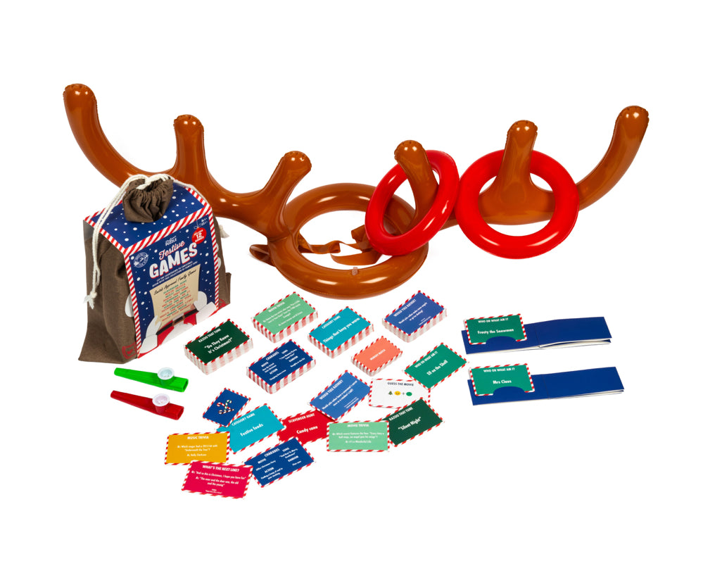 Get ready for a not-so-silent night with this merry sack of games, bursting with festive fun! Including twelve family friendly activities, from ring toss, to bingo, to trivia and more, there’s something inside to keep everyone feeling the Christmas joy. Presented in a sturdy hessian sack, this fun-filled set is perfect for playing at home, or taking on the go to spread the festive cheer!