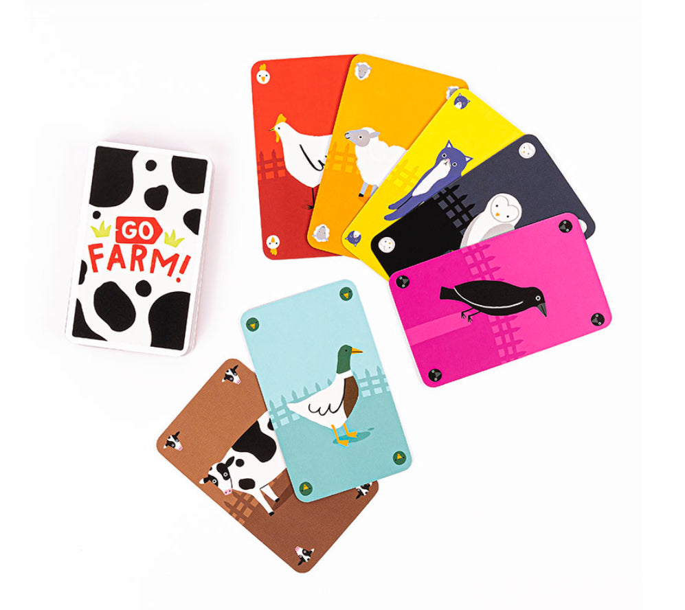 All the animals have escaped and now they’re mixed up on the farm! Collect a full set, then make that animal’s sound. Whoever rounds up the most sets wins in this fun twist on Go Fish!
