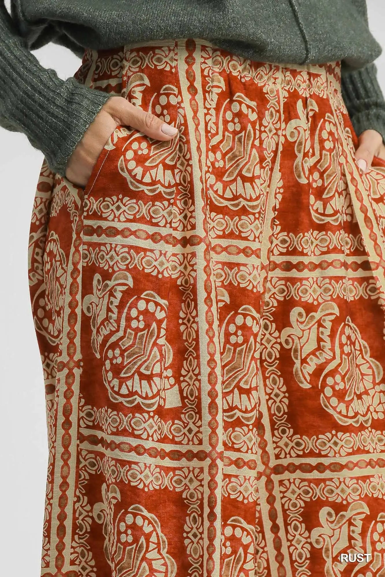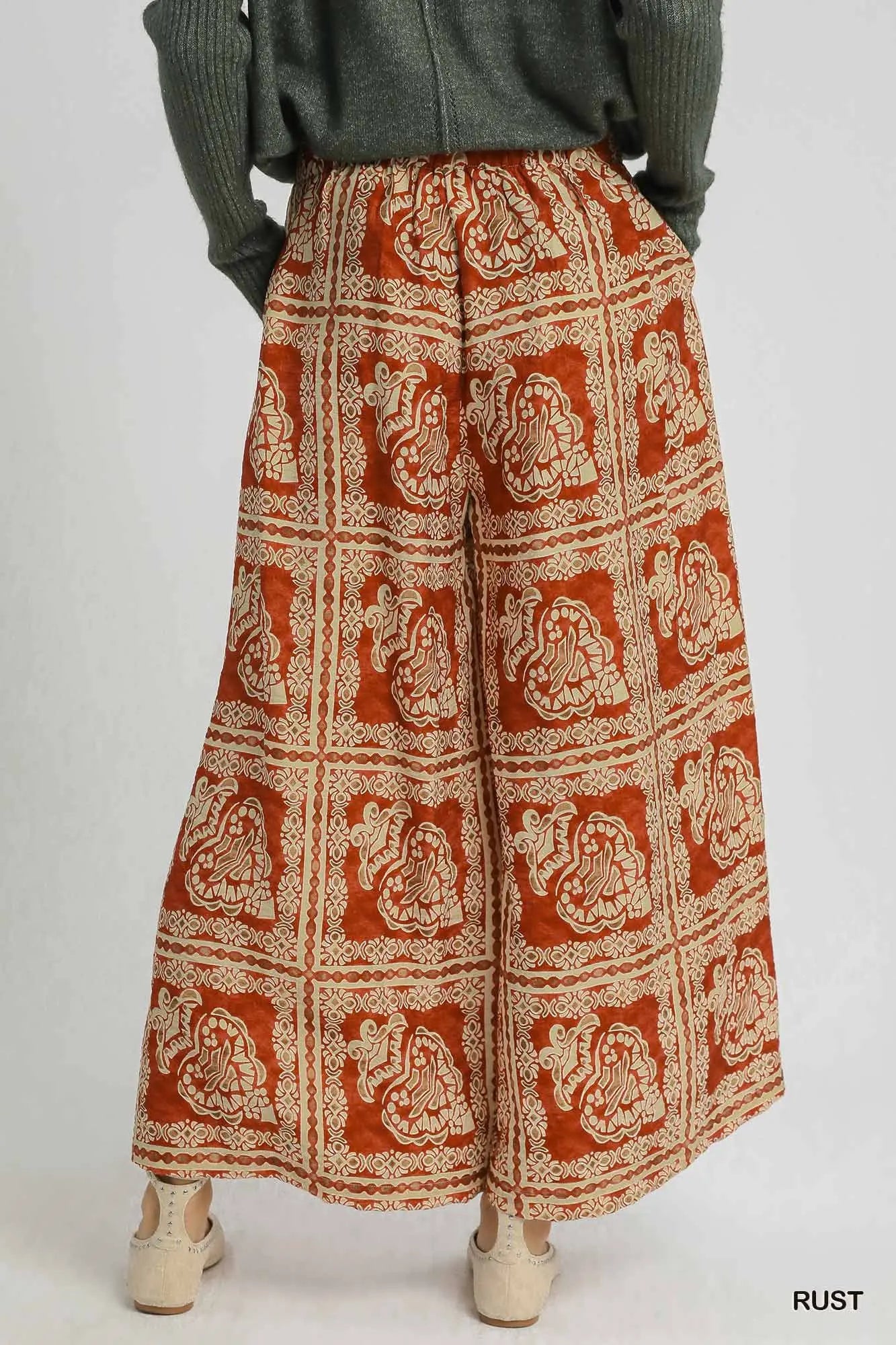 The Rust Pant features an elastic waistband for all day comfort and a wide leg design for a relaxed, flowy silhouette. With the addition of side pockets, these skirt pants are both functional and fashionable.