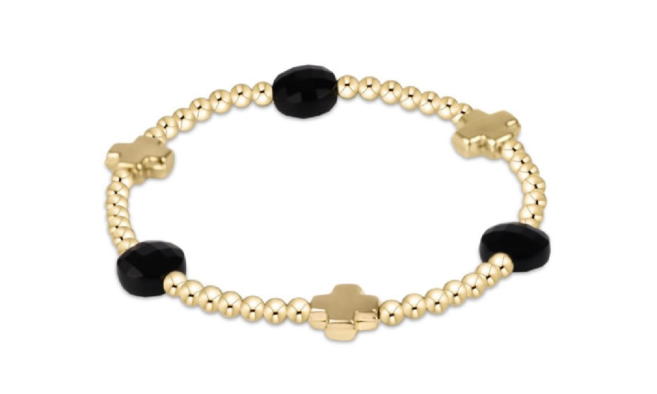Signature Cross Admire Gold Pattern 3mm Bead Bracelet- Gemstone