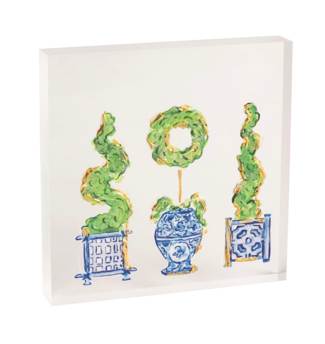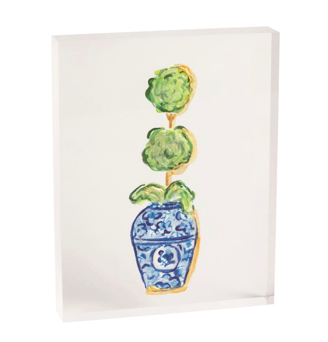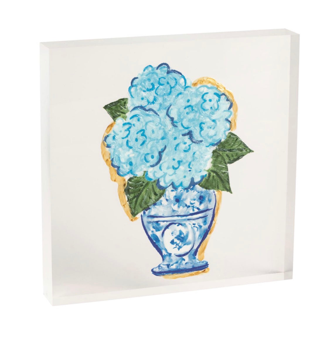 Acrylic block plaque with hand-painted gold detail.